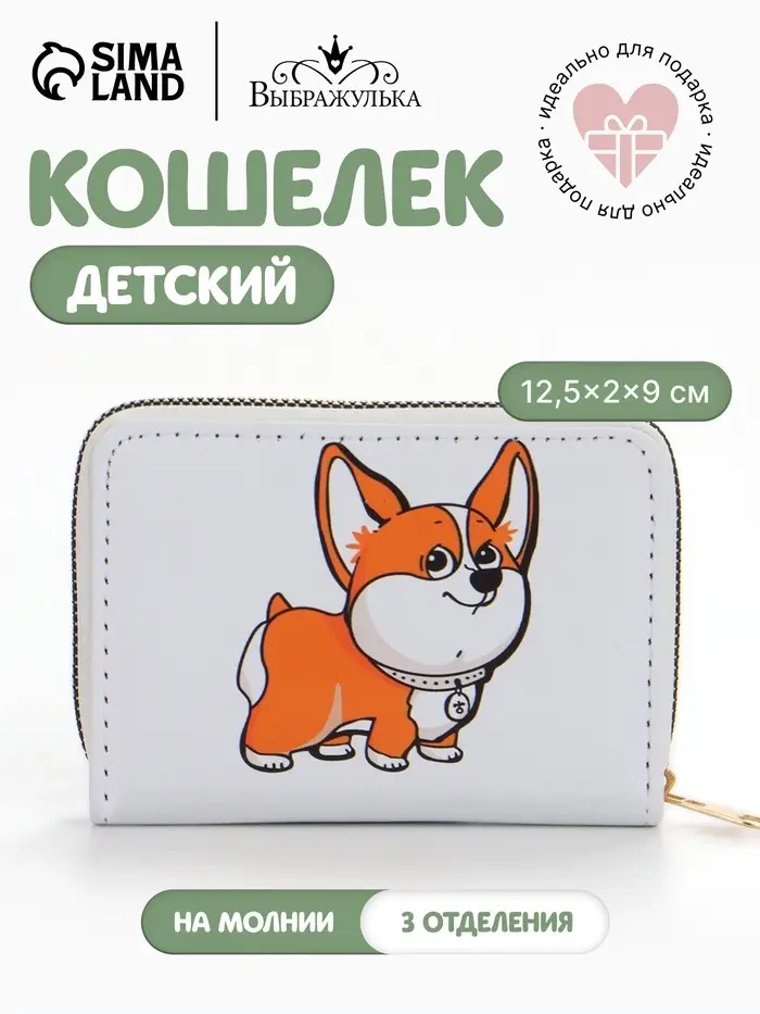 Кошелёк детский Выбражулька «Корги», на молнии, белый