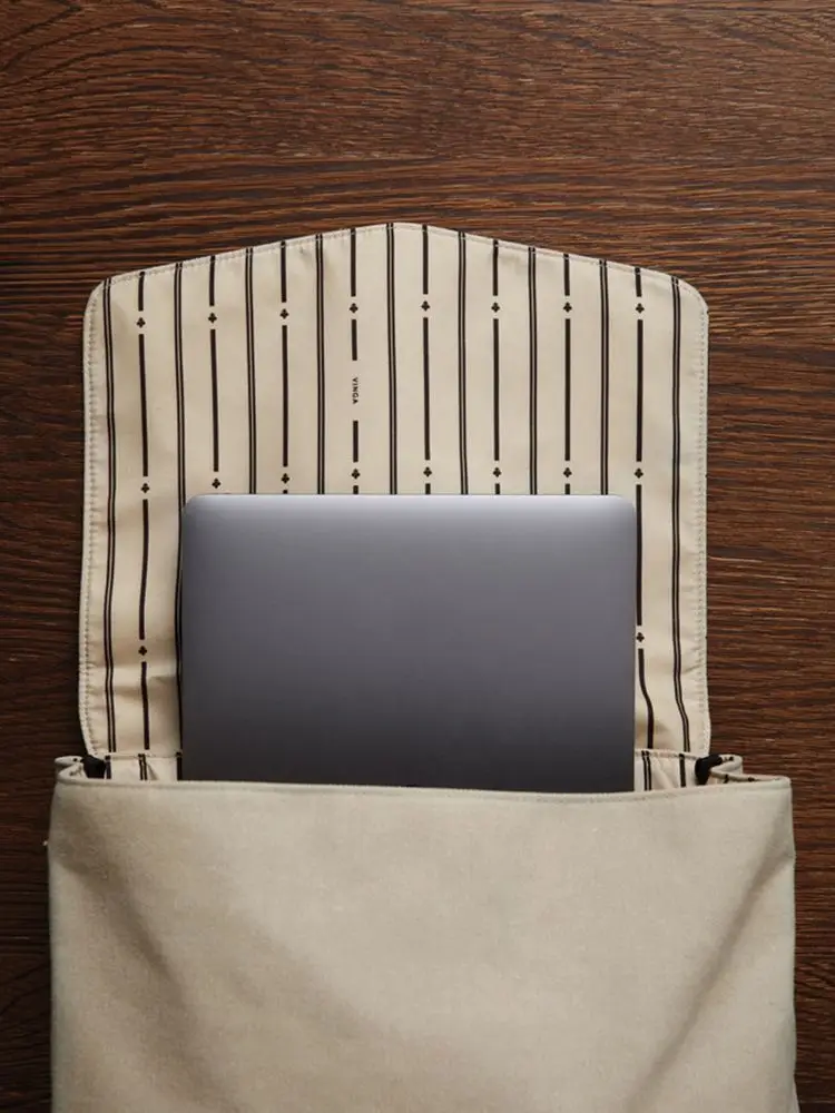 Рюкзак Bosler изготовлен из переработанного канваса, не только выглядит модно, но и демонстрирует заботу об окружающей среде. Он оснащен отделением для ноутбука и привлекает внимание контрастными деталями из полиуретана и латунной фурнитурой.