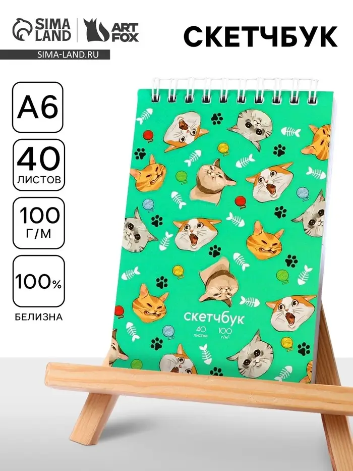 Скетчбук «Кот» А5, 40 л, 100 г/м²