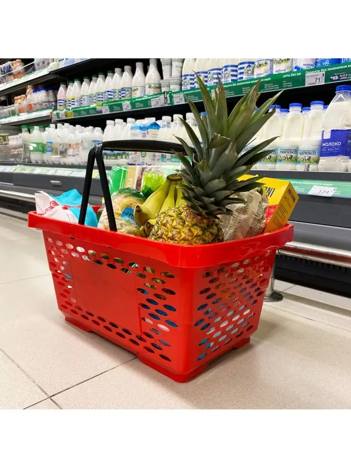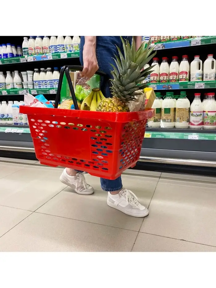Корзина покупательская пластиковая 28 л, 51.5×34×26 см, красная