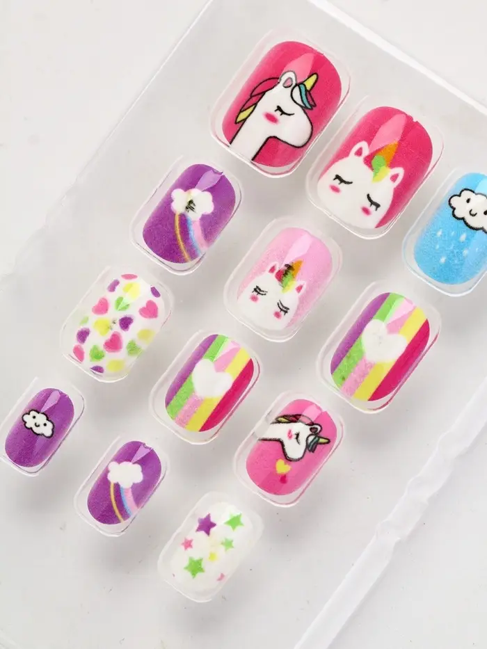 Детские накладные ногти придуманы для самых ярких и стильных девчонок! Клей уже нанесён на ногти.