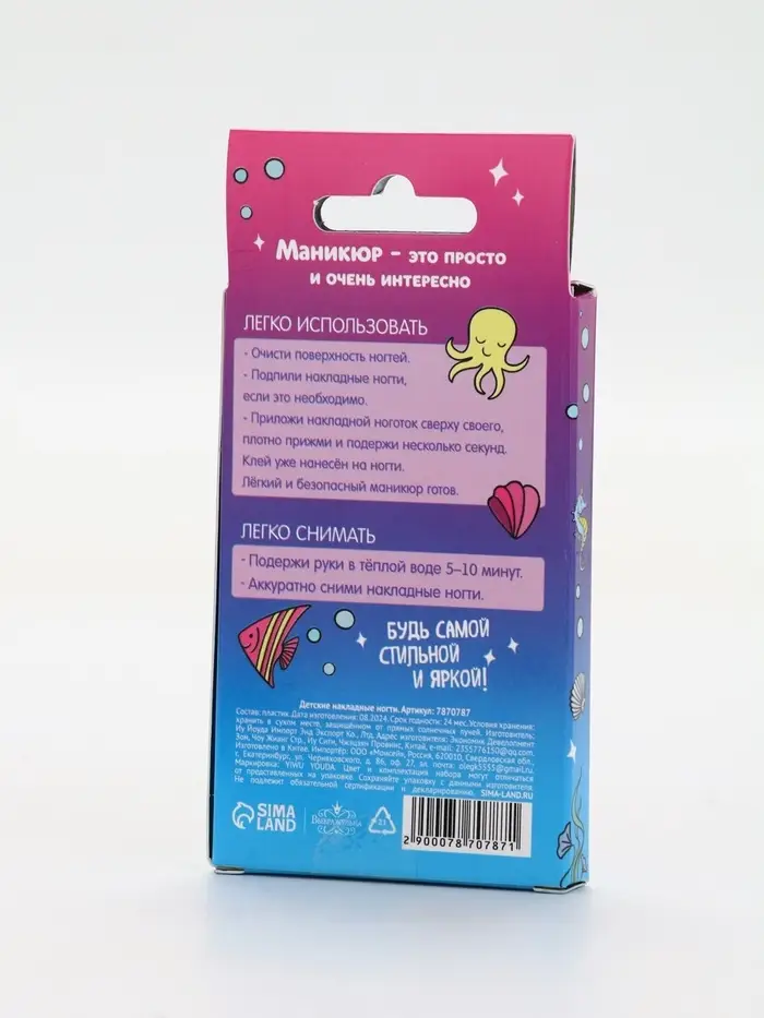 Детские накладные ногти придуманы для самых ярких и стильных девчонок! Клей уже нанесён на ногти.