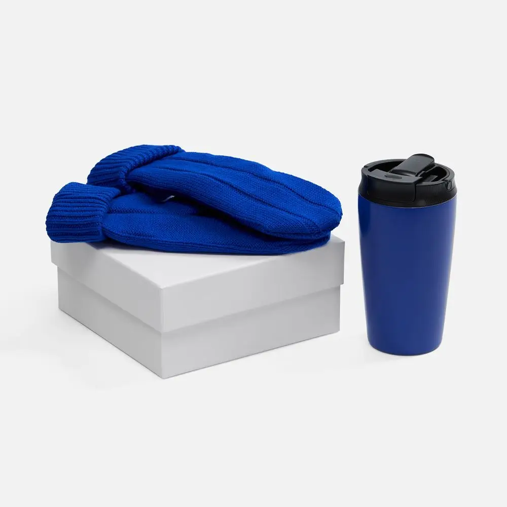 термостакан - нержавеющая сталь; крышка - пластик; варежки - акрил 100%; подкладка - флис; коробка - переплетный картон, бумага Magic