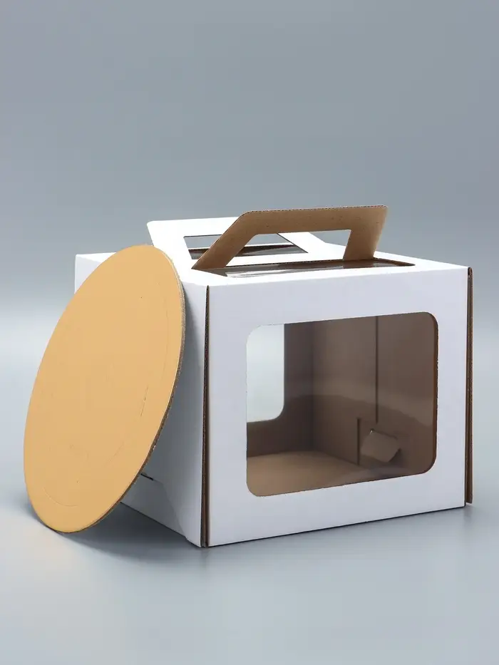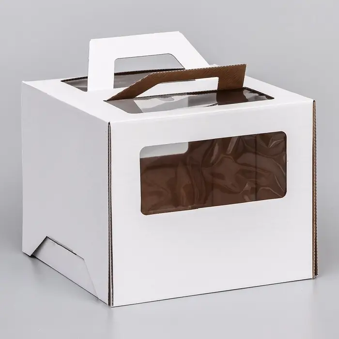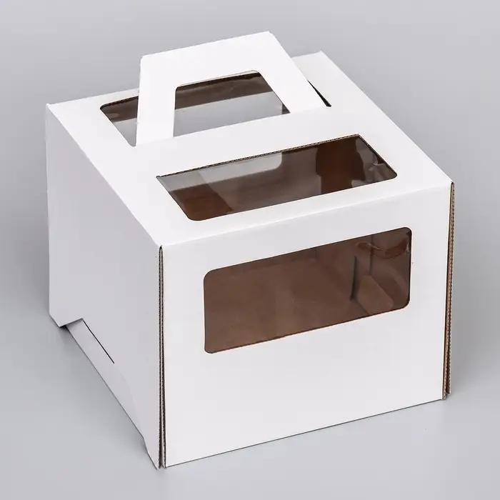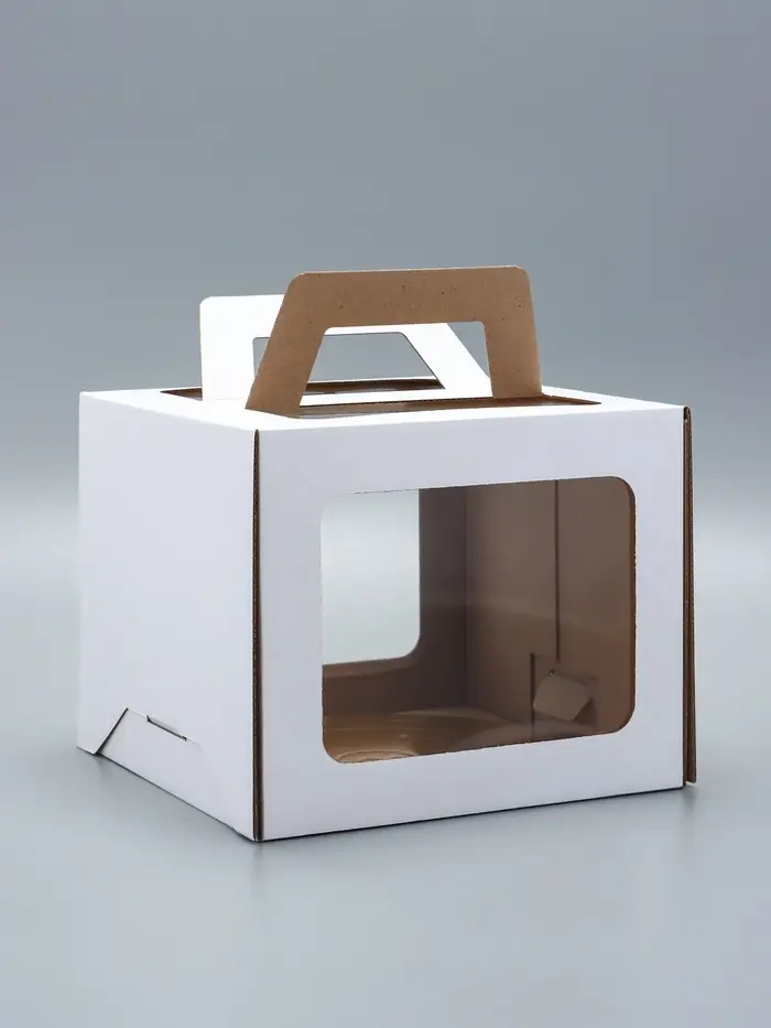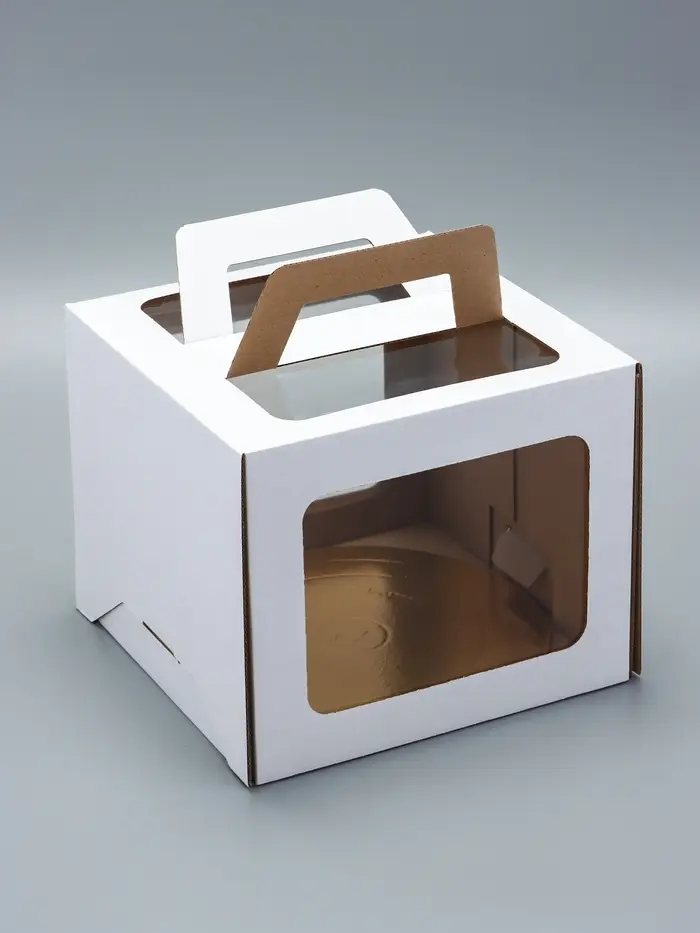 Праздничное решение для торжественных моментов! Белая коробка для торта с двумя окнами и ручками — это премиальная упаковка для особых десертов. Её солидный вид и продуманные детали создают ощущение праздника ещё до момента открытия.