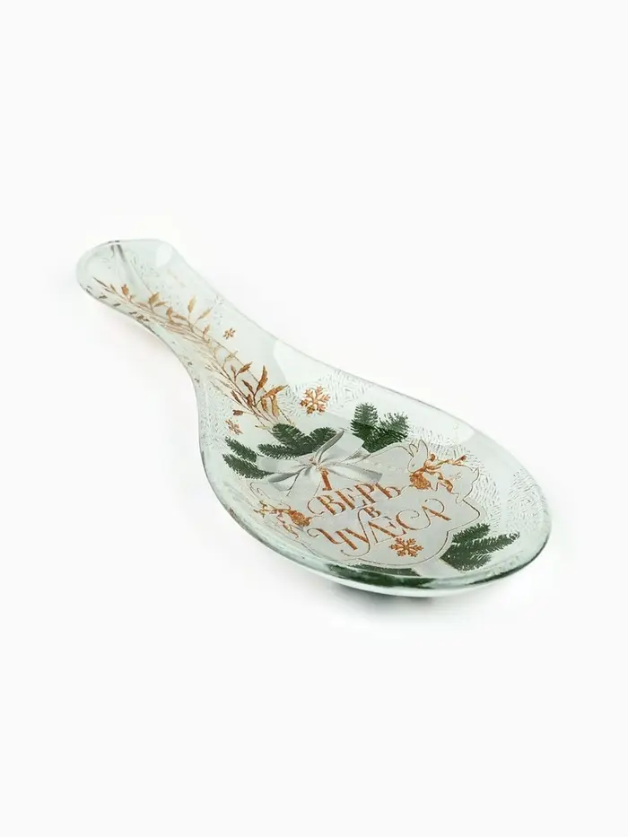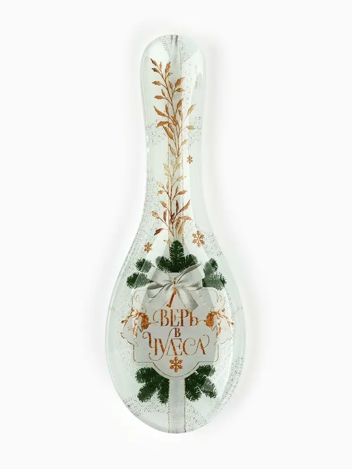Новогодняя стеклянная подставка под ложку размером 21 х 7,5 х 2 см — отличный выбор для вашей кухни.