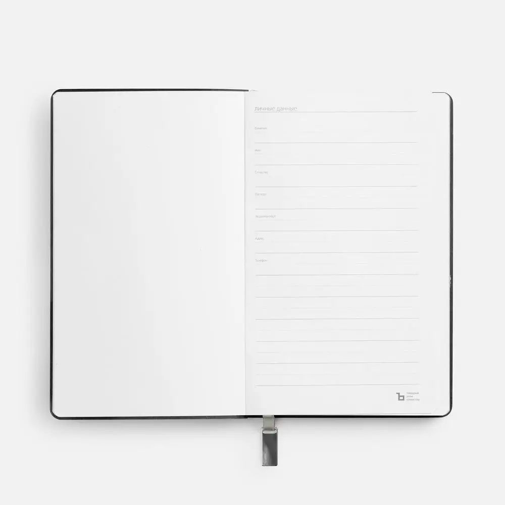 Ежедневник с гибкой обложкой, выполнен из материала Petrus, черный АА, дополнен серым ляссе с металлическим шильдиком.