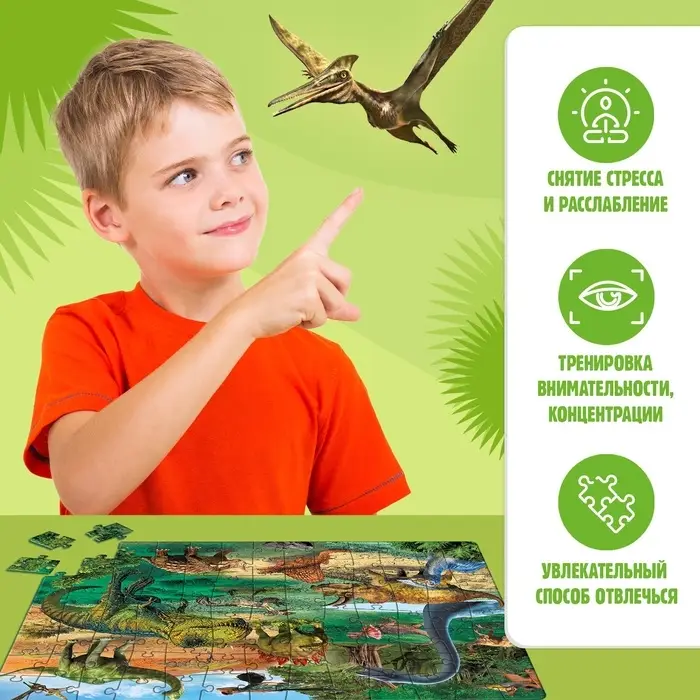 Пазл с фонариком «Динозаврики», 63 детали