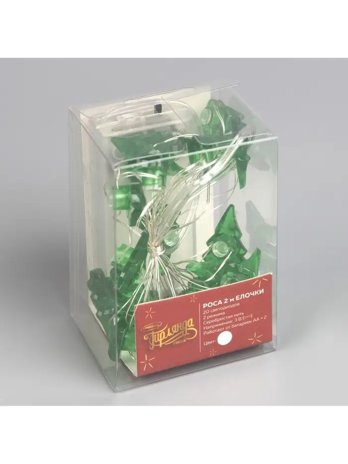 Гирлянда «Нить» 2 м, роса с насадками «Ёлочка», IP20, серебристая нить, 20 LED, 2 режима, от батареек АА×2, свечение белое