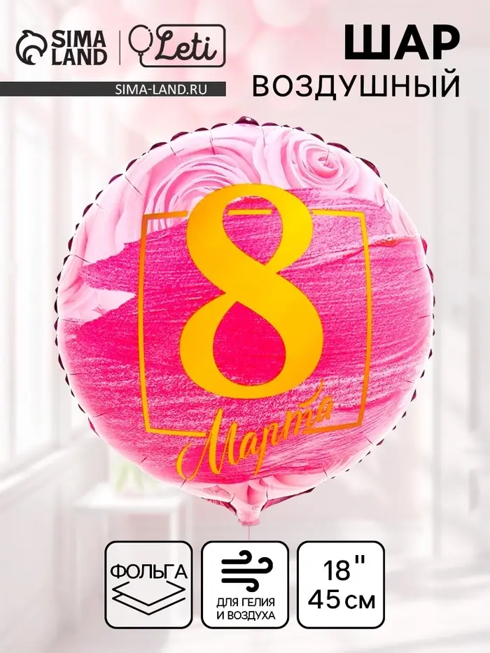 Воздушный шар фольгированный 18" «8 марта»