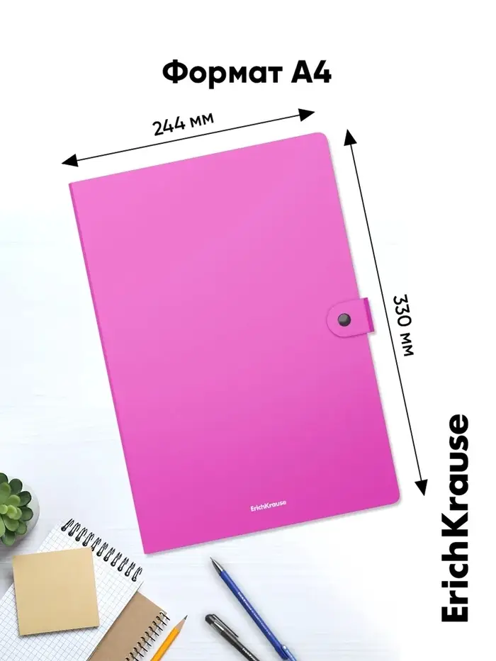 Папка-картотека на кнопке А4, ErichKrause Matt Neon, с 4 отделениями, пластик, микс
