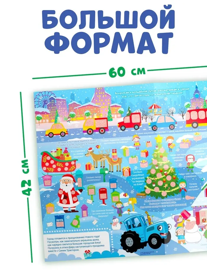 Активити - плакат с волшебной лупой «Зимний», двусторонний, А2, Синий трактор
