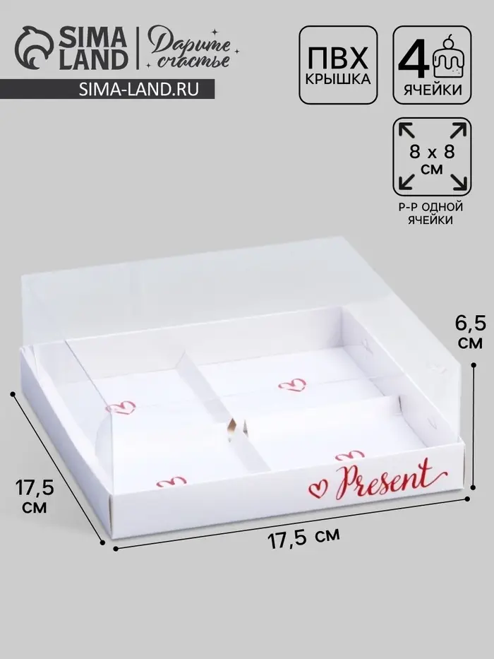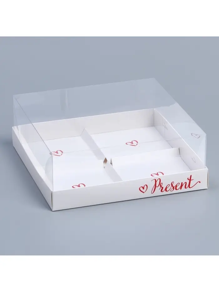 Коробка кондитерская для муссовых пирожных «Подарок», 17.8×17.8×6.5 см