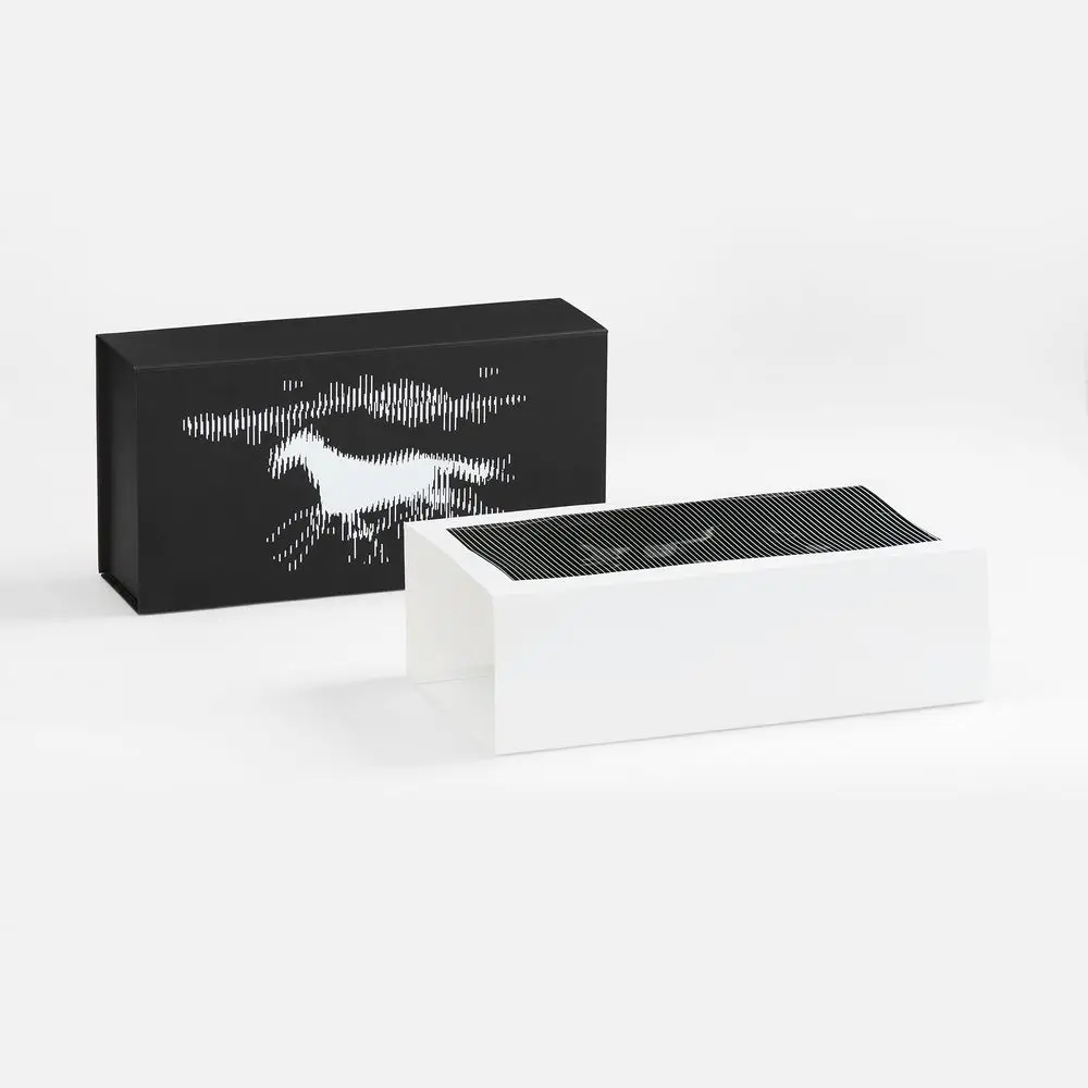 «Динамика успеха» — интерактивная упаковка, дизайн которой говорит сама за себя. Она как бы напоминает: настоящий успех начинается с первого шага — и продолжается в каждом следующем. При открытии коробки изображение лошади словно оживает: стоит отодвинуть шубер — и конь срывается в бег.
