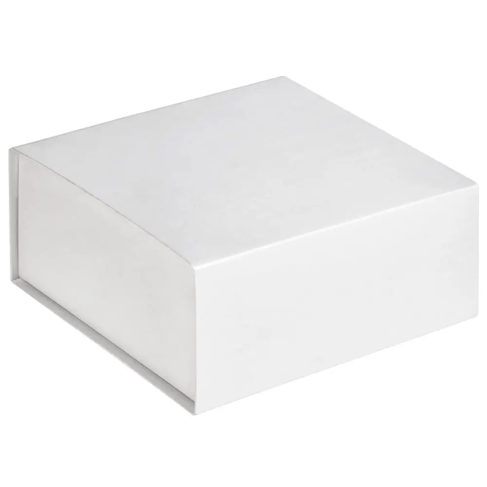 Коробка изготовлена из переплетного картона, кашированного дизайнерской бумагой Fabric Embossing Fine Linen, с крышкой на магните.