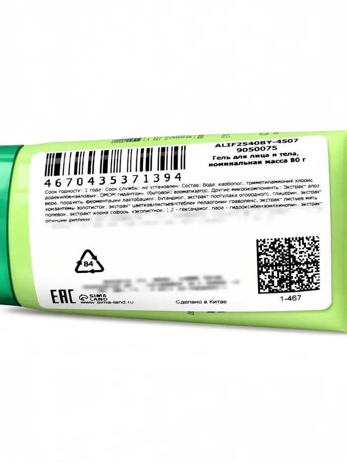Состав: вода, сок листьев алоэ вера, гиалуроновая кислота, центелла азиатская, глицерин, карбомер, экстракт корня солодки, бетаин, глицерил лаурат, гидроксиацетофенон, триэтаноламин, аллантоин, феноксиэтанол, ароматизатор.