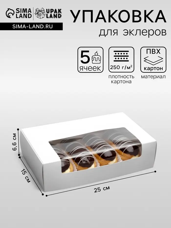 Профессиональное решение для кондитерских: Эта коробка создана для продажи эклеров навынос. Она экономит время на упаковку, предоставляя готовое и эстетичное решение, которое нравится покупателям. Её используют как в розничных точках, так и для оформления заказов на доставку, гарантируя, что хрупкие десерты доедут до клиента в идеальном виде.