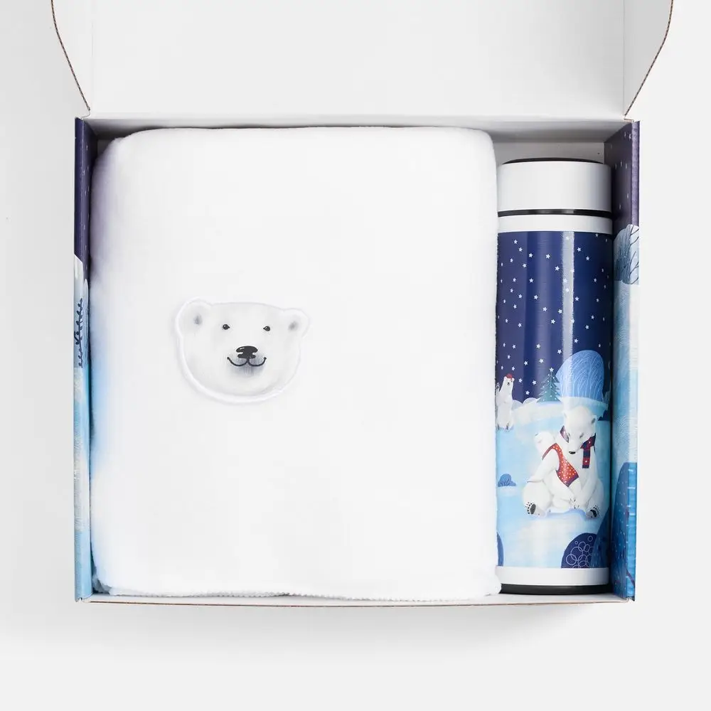 Все составляющие набора украшены милыми изображениями с белыми мишками — одним из главных зимних символов. Это дарит настоящее ощущение праздника — будто маленький очаг тепла, который всегда можно взять с собой.