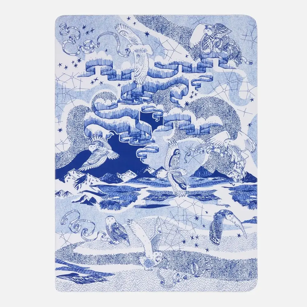 Чарующее изображение с совами на фоне бескрайнего горного пейзажа на мягком флисовом пледе и подарочной упаковке задает тон всему подарку и открывает дверь в мир, где реальность переплетается с волшебством. Мудрые совы несут короткие, но емкие послания, — как пожелания и заветы на будущий год.
