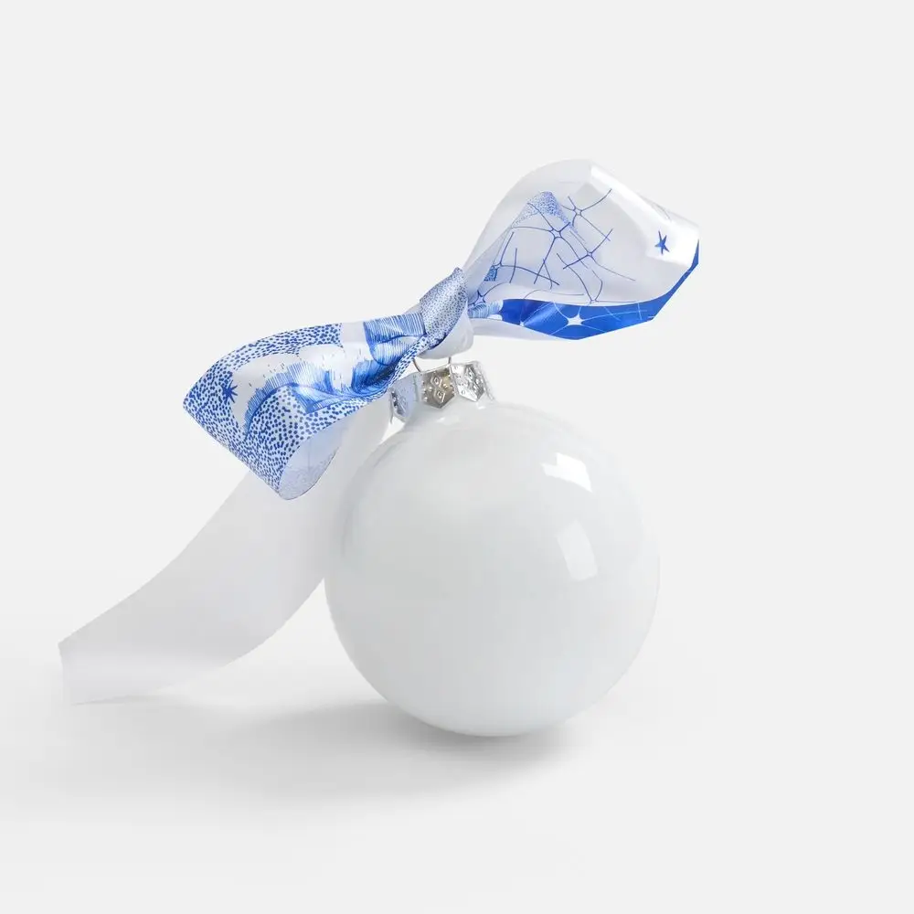 Изящная гравировка с парящими совами на кружке дополняет композицию, а лента елочного шара украшена небесным орнаментом — созвездиями и всполохами сияния. Так магии Севера становится еще больше, а весь набор вызывает приятный трепет. Тонкие линии, будто выведенные вручную, придают ему графичную изысканность.
