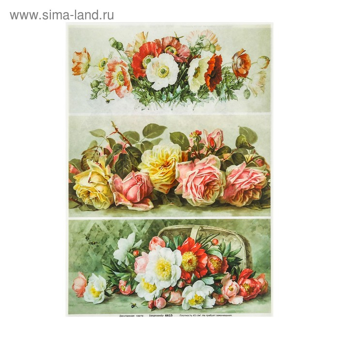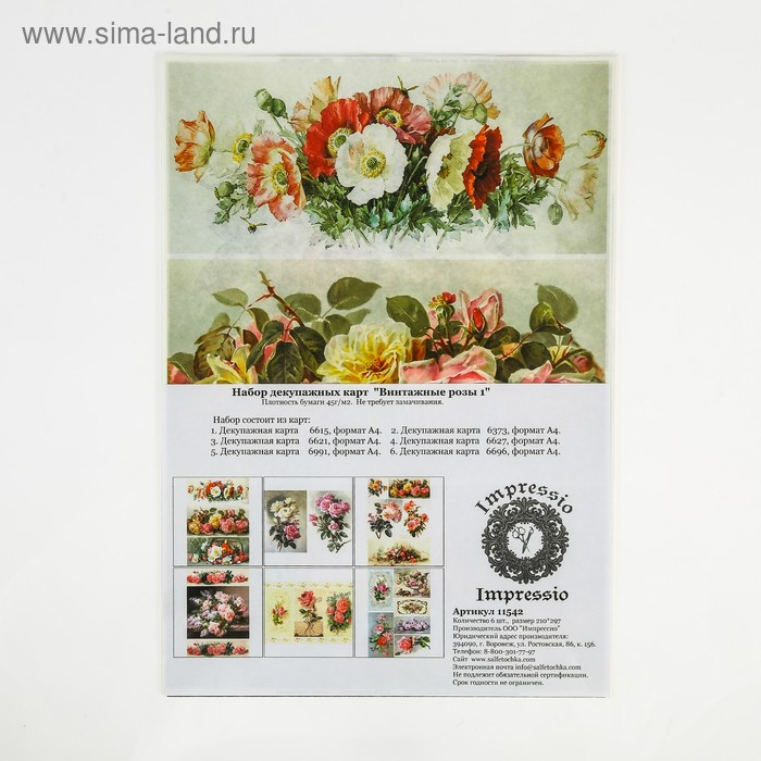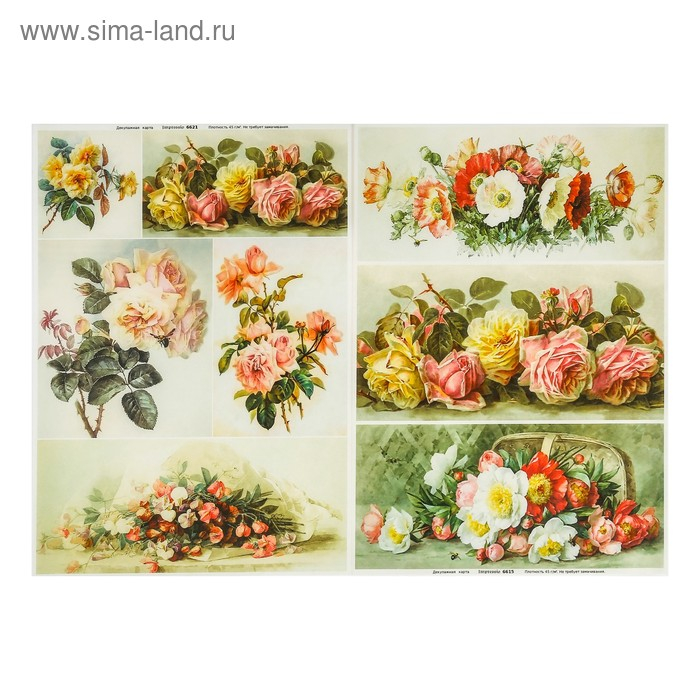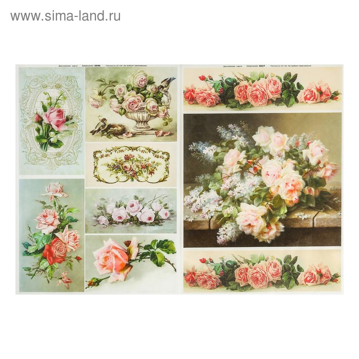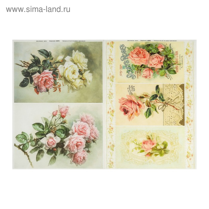 Набор декупажных карт 6 шт "Винтажные розы 1" А4, 45 г/м2