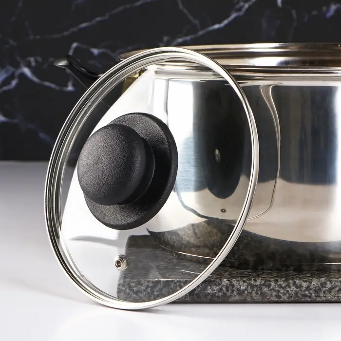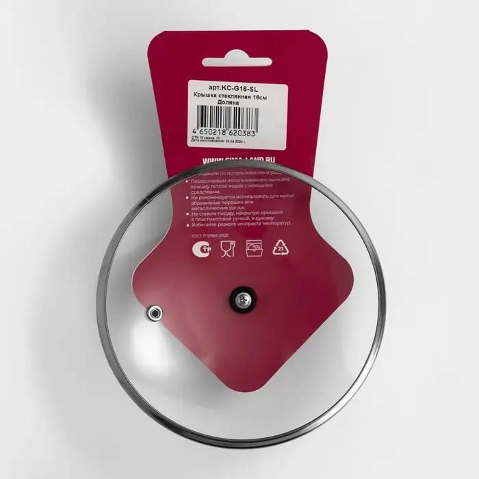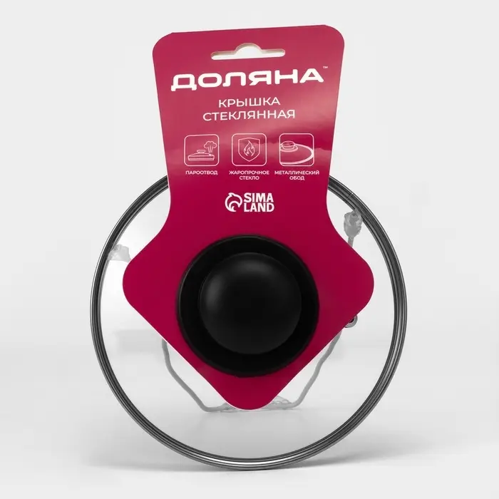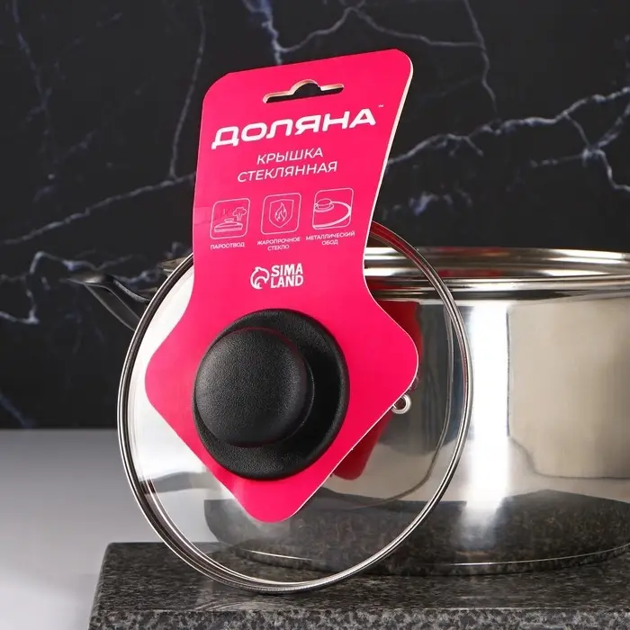 Крышка для сковороды и кастрюли Доляна, d=16 см, нержавеющий обод, пластиковая ручка, стекло, прозрачная