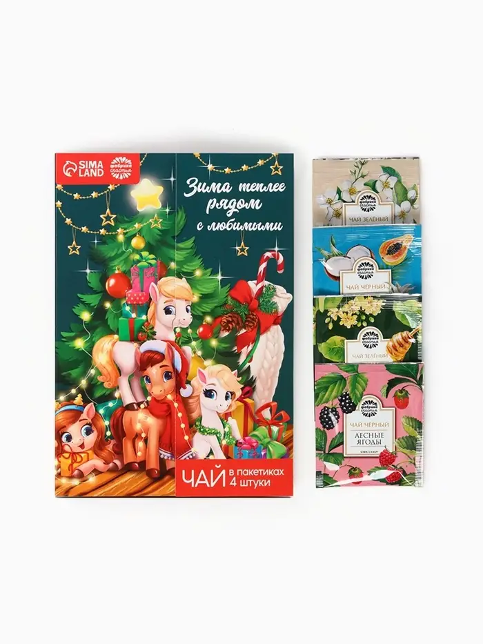 Чай новогодний в пакетиках «Волшебных мгновений» в открытке, 4 шт.×1.8 г