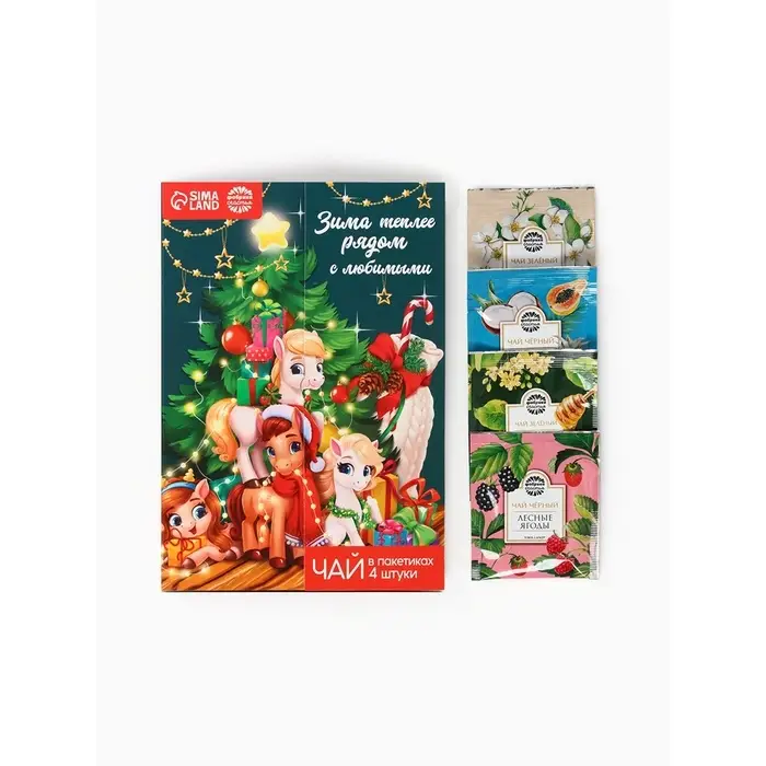Чай новогодний в пакетиках «Зима теплее рядом с любимыми» в открытке, 4 шт.×1.8 г