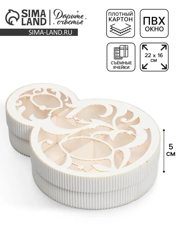Коробка подарочная, кондитерская упаковка «8 марта» белая, 22×16×5 см