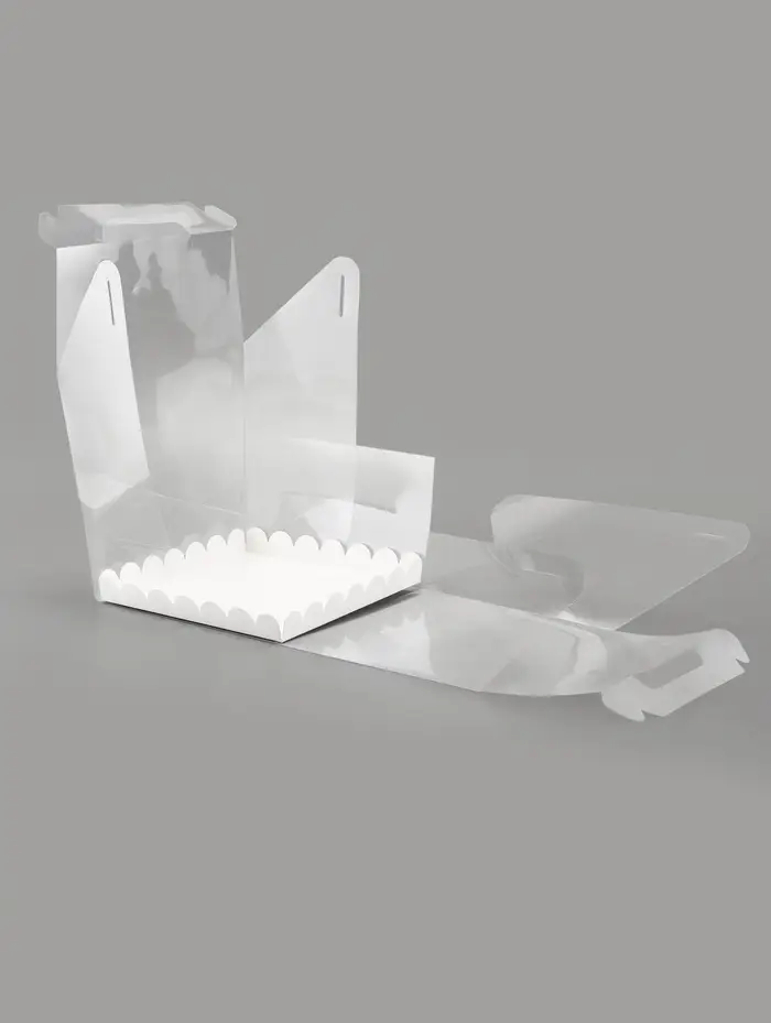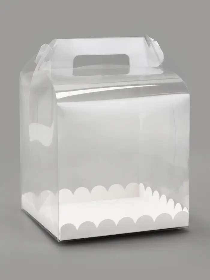 - Полная прозрачность: Коробка из ПВХ обеспечивает круговой обзор десерта. Можно оценить украшения и оформление торта со всех сторон без открывания упаковки.