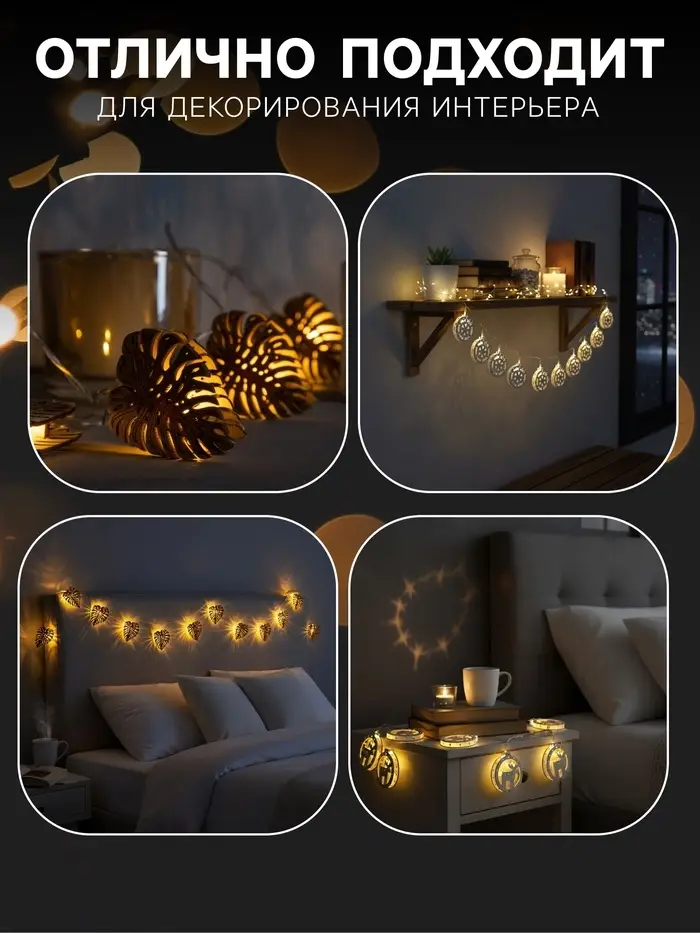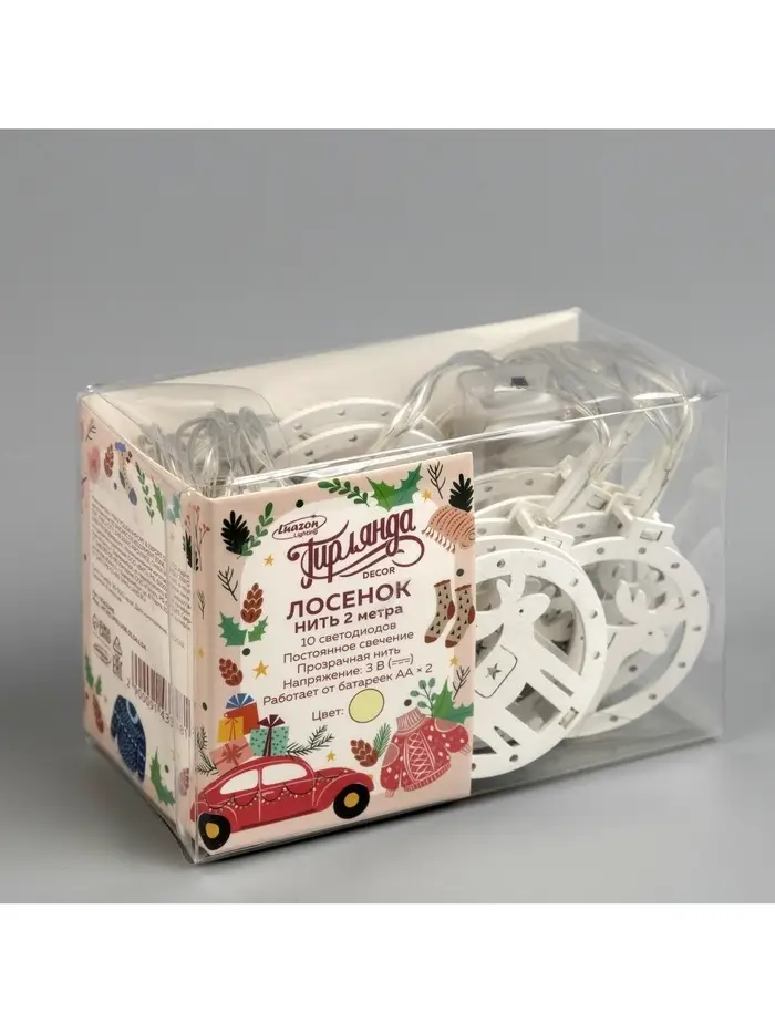 Гирлянда «Нить» 2 м с насадками «Оленёнок», IP20, прозрачная нить, 10 LED, батарейки AAх2 (не в комплекте), свечение тёплое белое