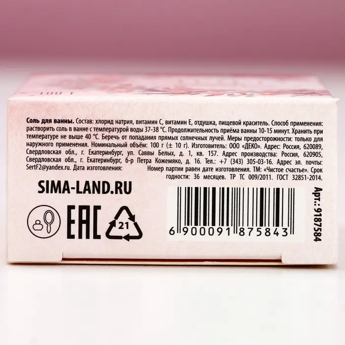 Соль для ванны «Тепла и уюта!», 100 г, аромат розы, Чистое счастье