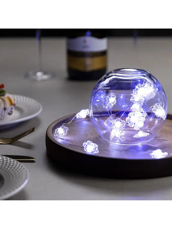 Гирлянда «Нить» 2 м, роса с насадками «Снежинка», IP20, серебристая нить, 20 LED, 2 режима, от батареек АА×2, свечение белое
