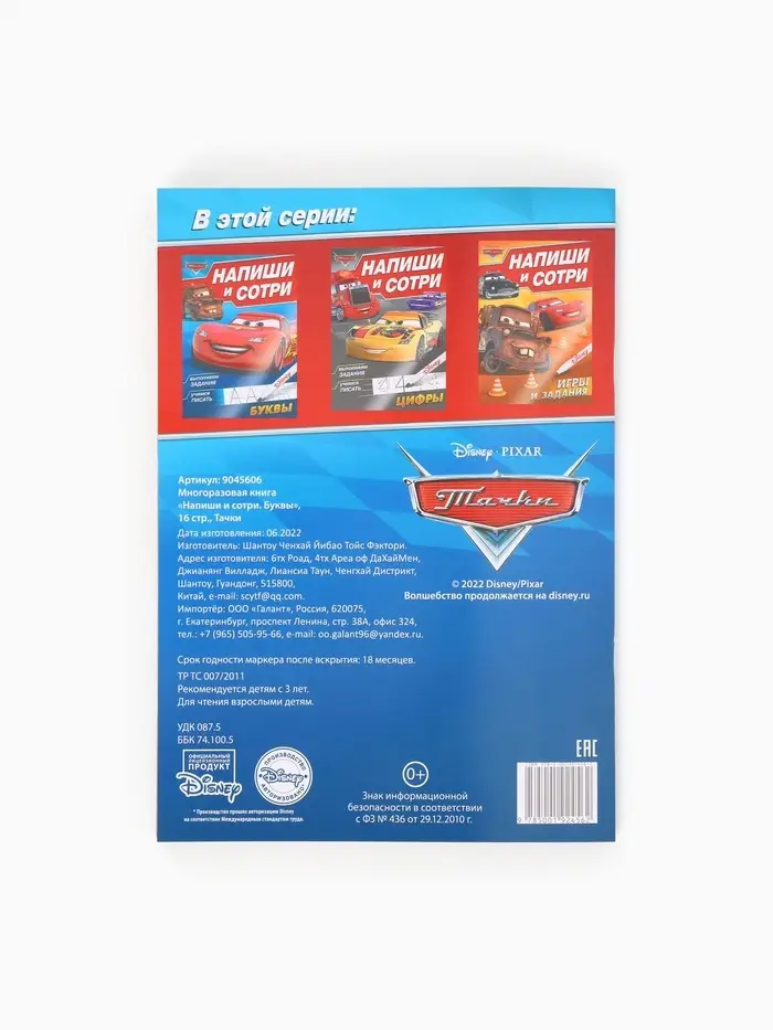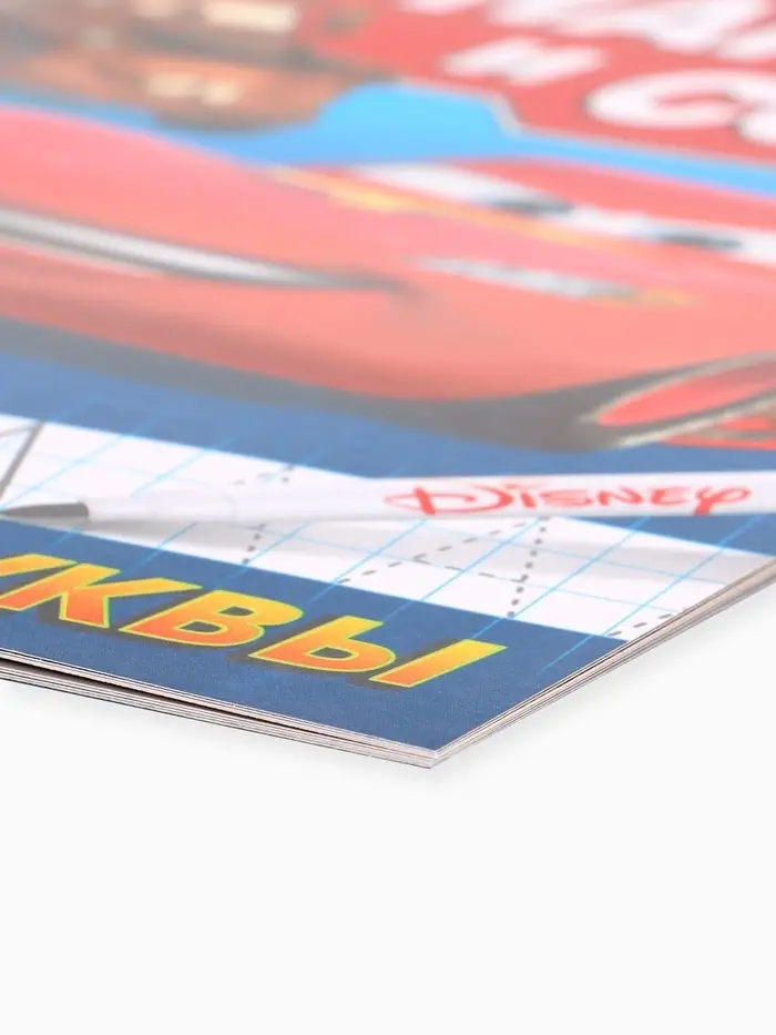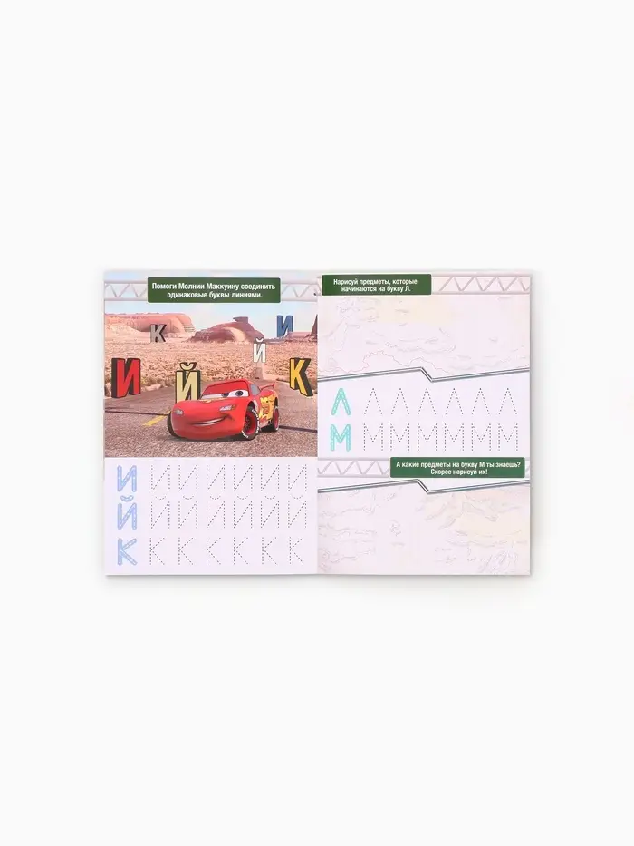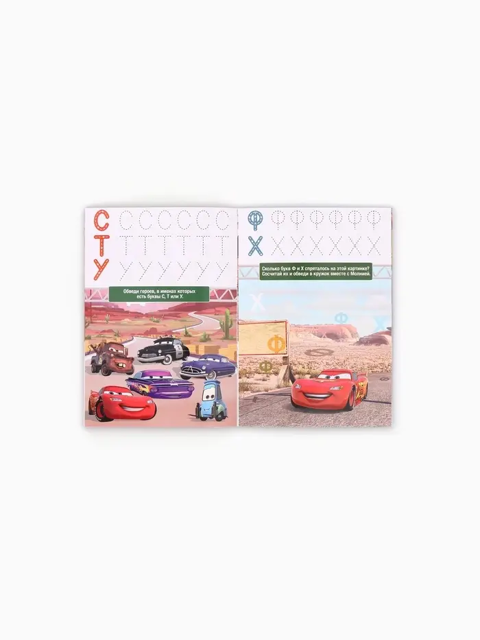 Яркие иллюстрации с любимыми героями мультфильма «Тачки» сделают занятия веселее и интереснее.