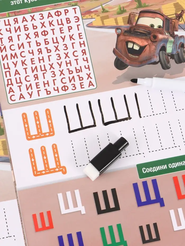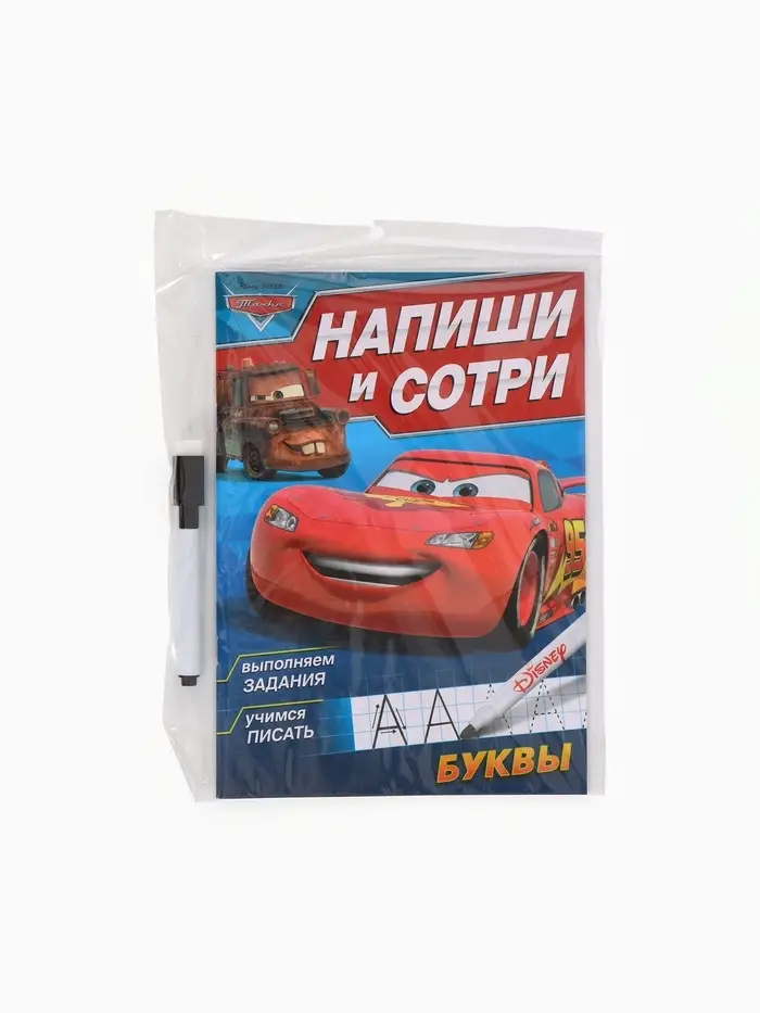 Книга многоразовая «Напиши и сотри. Буквы», 16 стр., маркер, Тачки