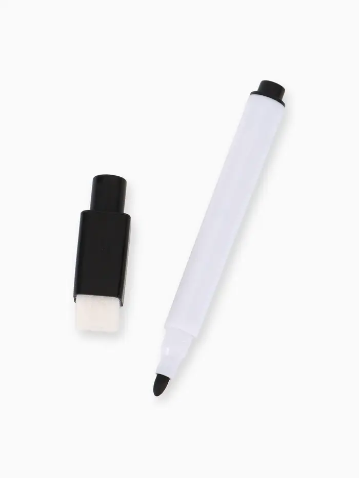 В комплекте есть удобный маркер на водной основе, который легко стирается губкой на колпачке.