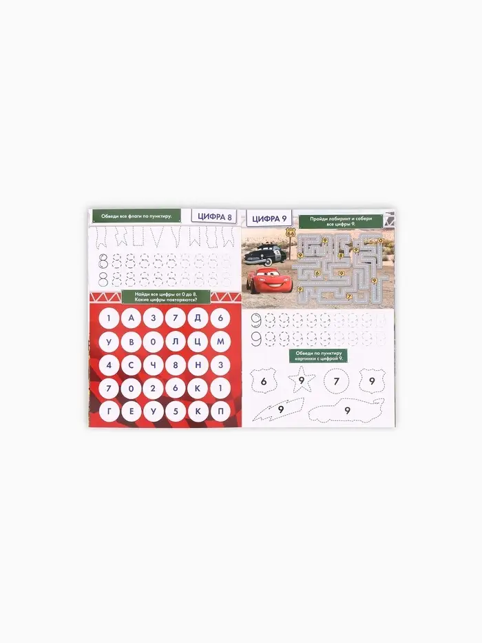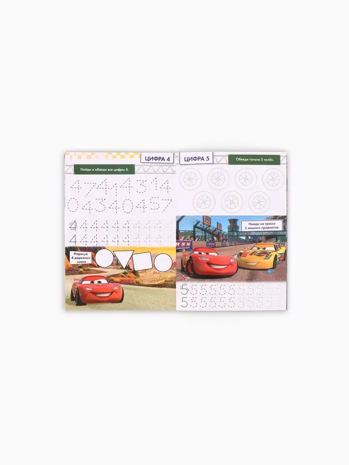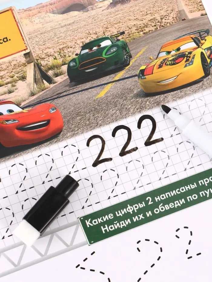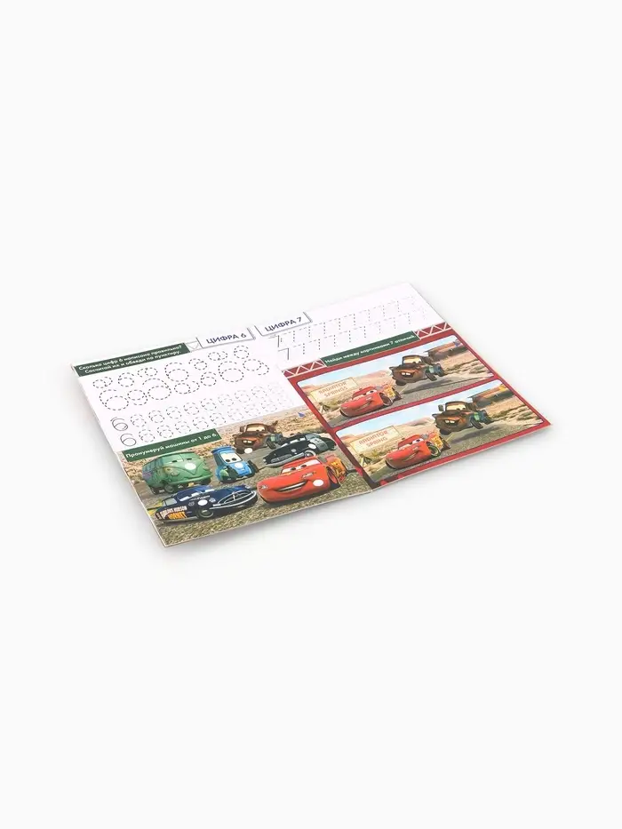 Яркие иллюстрации с любимыми героями мультфильма «Тачки» сделают занятия веселее и интереснее.