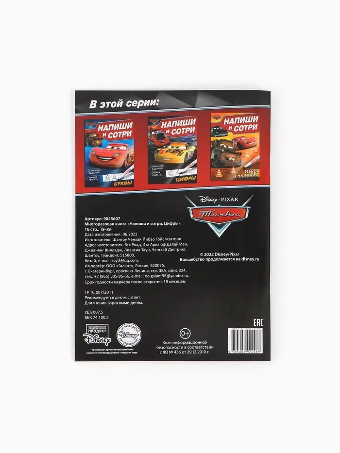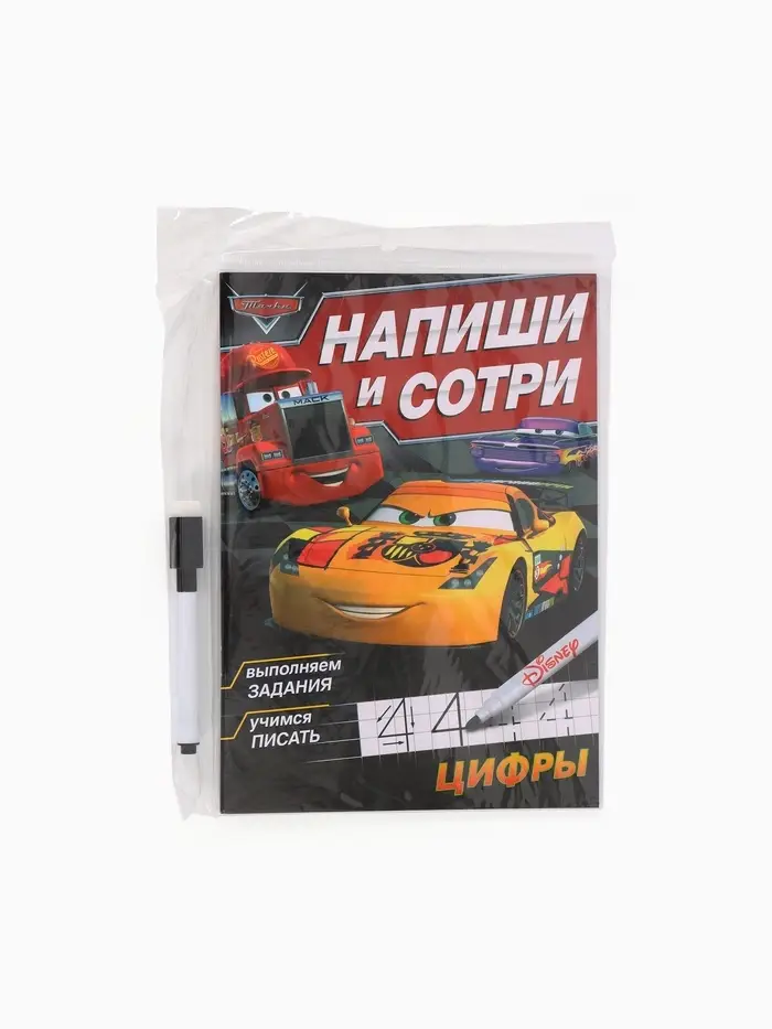 Многоразовая книга «Напиши и сотри. Цифры», 16 стр., 17×24 см, + маркер, Тачки