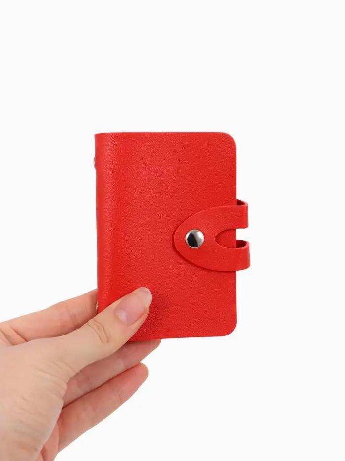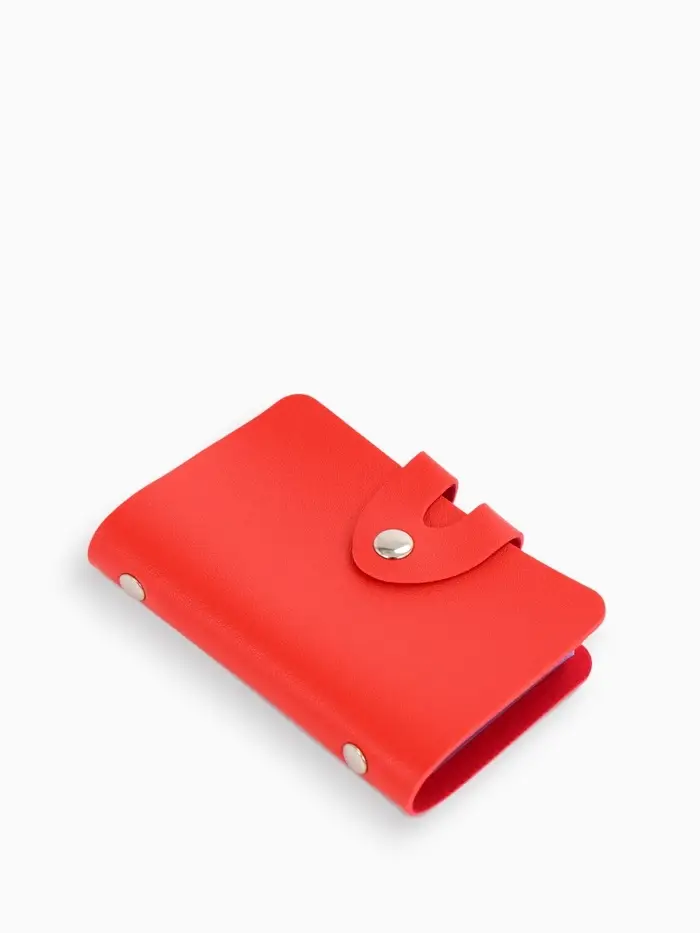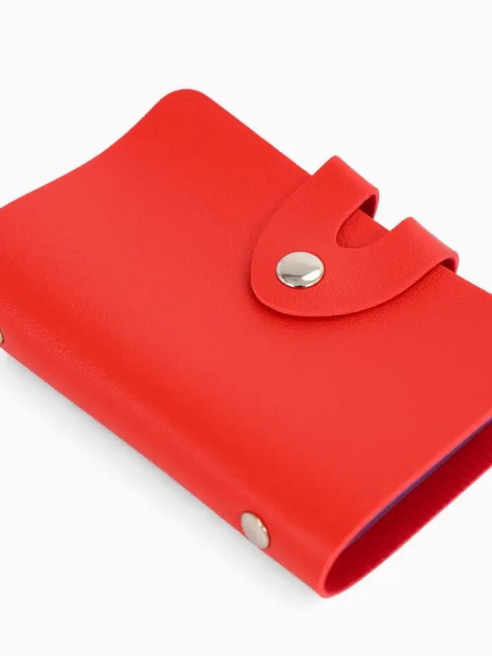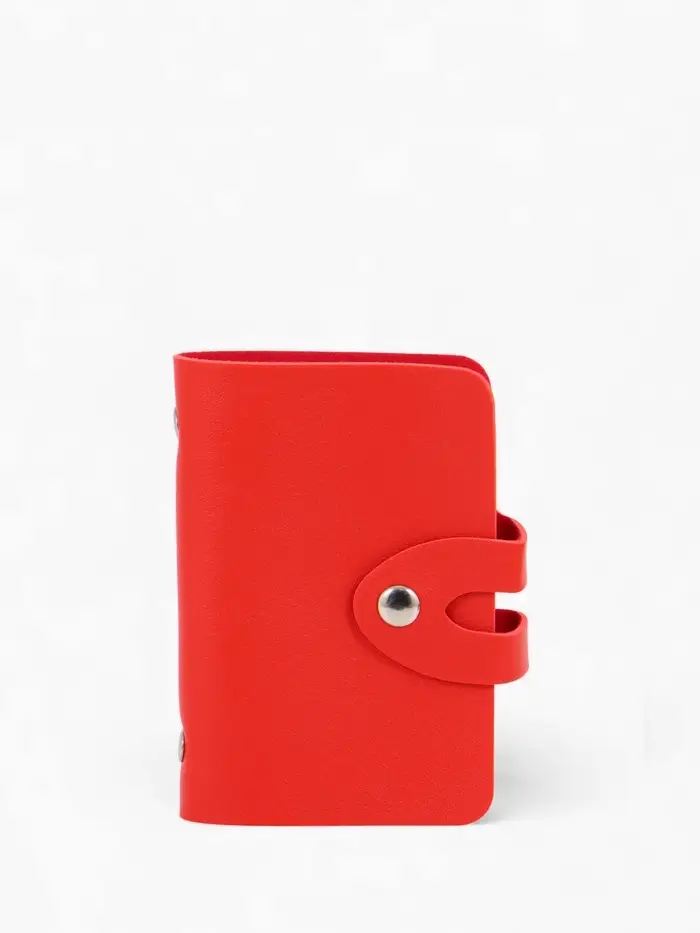 Эта компактная карманная визитница — надежный хранитель ваших контактов. Она создана для деловой женщины, которая ценит лаконичный стиль и функциональность в деталях. Прочная красная обложка из искусственной кожи с аккуратной застежкой-кнопкой защищает 24 визитные карточки, всегда сохраняя их в идеальном порядке.