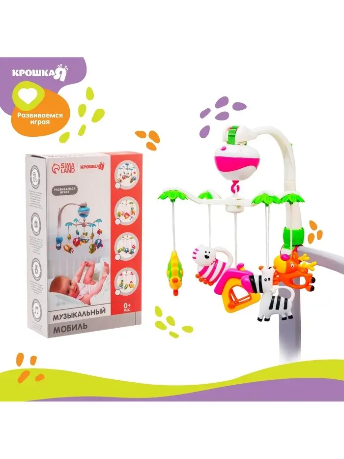 Мобиль музыкальный на кроватку Крошка Я «Домик. Джунгли №2», заводной