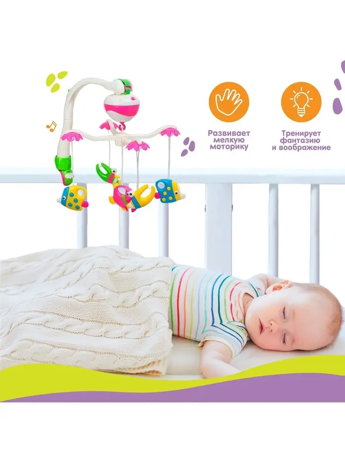 «Рыбки» — отличный выбор для родителей, которые хотят, чтобы малыш засыпал в спокойной обстановке. Это не просто украшение кроватки, а помощник в первые месяцы жизни ребёнка.
