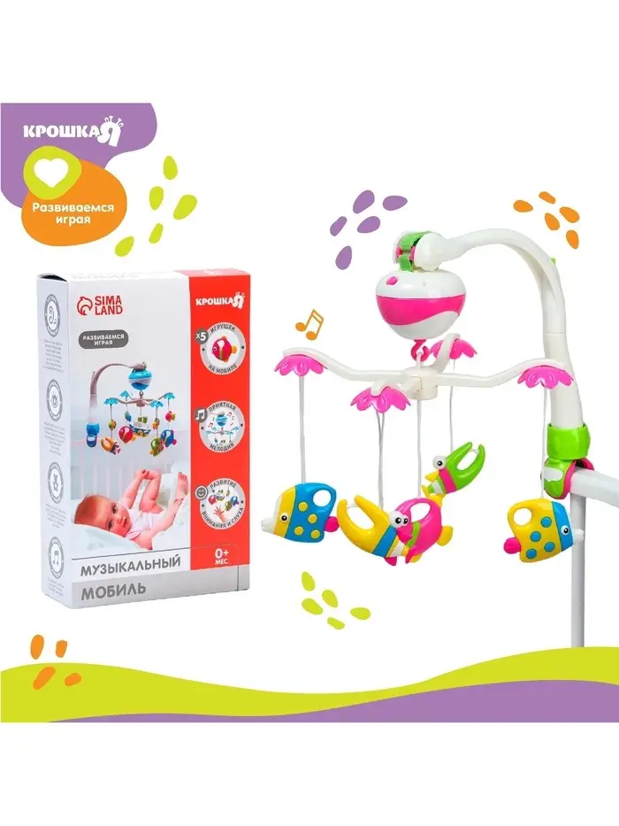 Мобиль музыкальный на кроватку Крошка Я «Рыбки», работает от батареек