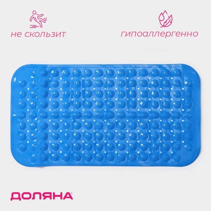 Коврик противоскользящий в ванну Доляна «Пузырьки», на присосках, 37×71 см, синий