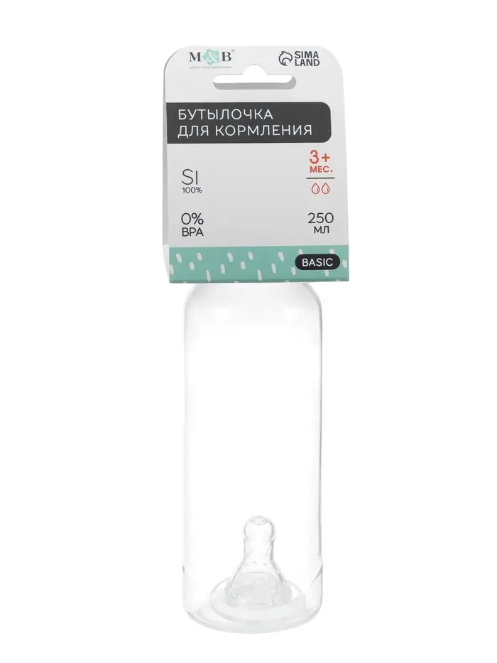 Бутылочка для кормления M&B, классическое горло, от 3 мес., 250 мл., цилиндр, бирюзовый