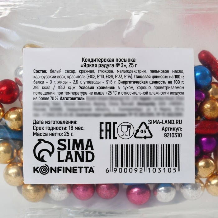 Посыпка кондитерская "Жемчуг", взорванные зерна риса, бирюза, серебро, черный, 50 г