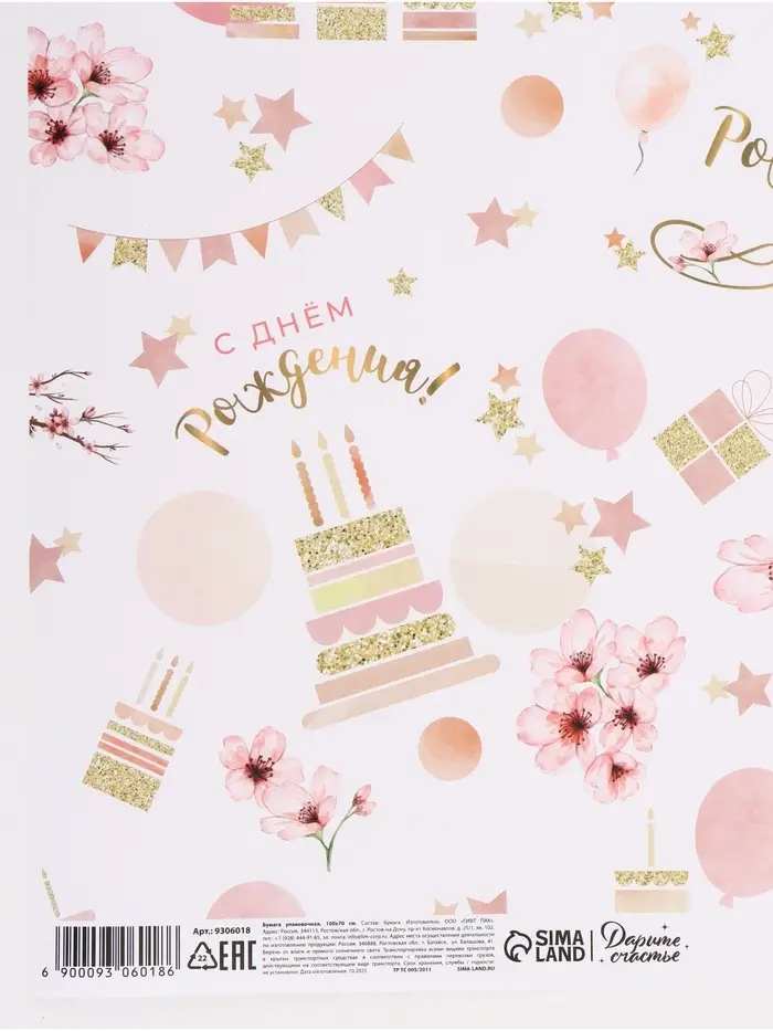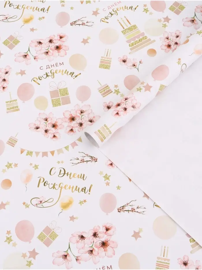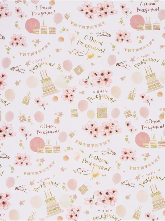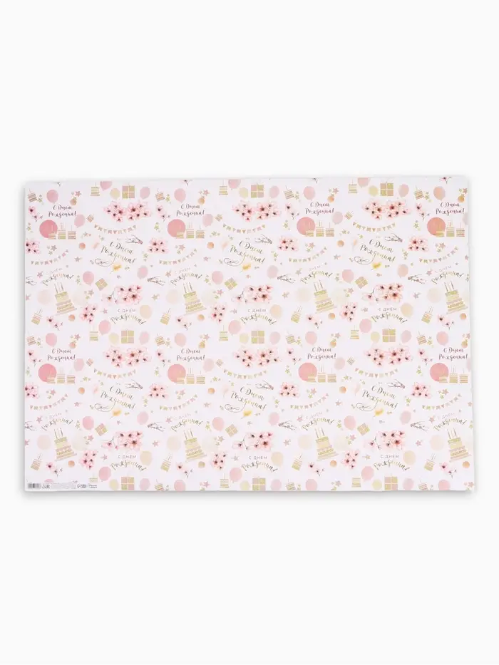 Бумага упаковочная «С днём рождения», глянец, 70×100 см, 1 лист