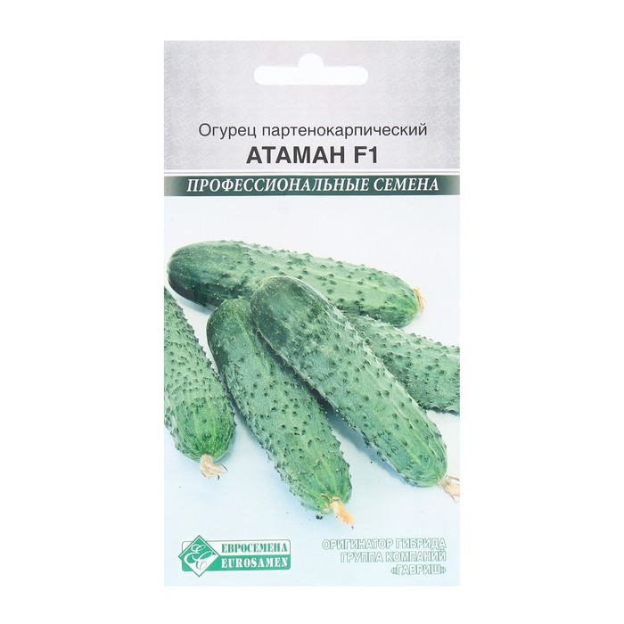Атаман — партенокарпический гибрид огурца для весеннего и летне-осеннего оборотов. Растения высокорослые, среднееветвящиеся, женского типа цветения. Зеленец длиной 13 — 15 см, цилиндрический, темно-зеленый, со слабыми свтлыми полосками до 1/4 длины плода; бугорки среднего размера, выражены четко, расположены довольно часто. Товарность и траспортабельность плодов высокие, вкусовые качества отличные. Гибрид устойчив к оливковой пятнистости, настоящей мучнистой росе и корневым гнилям, толерантен к ложной мучнистой росе и аскохитозу.