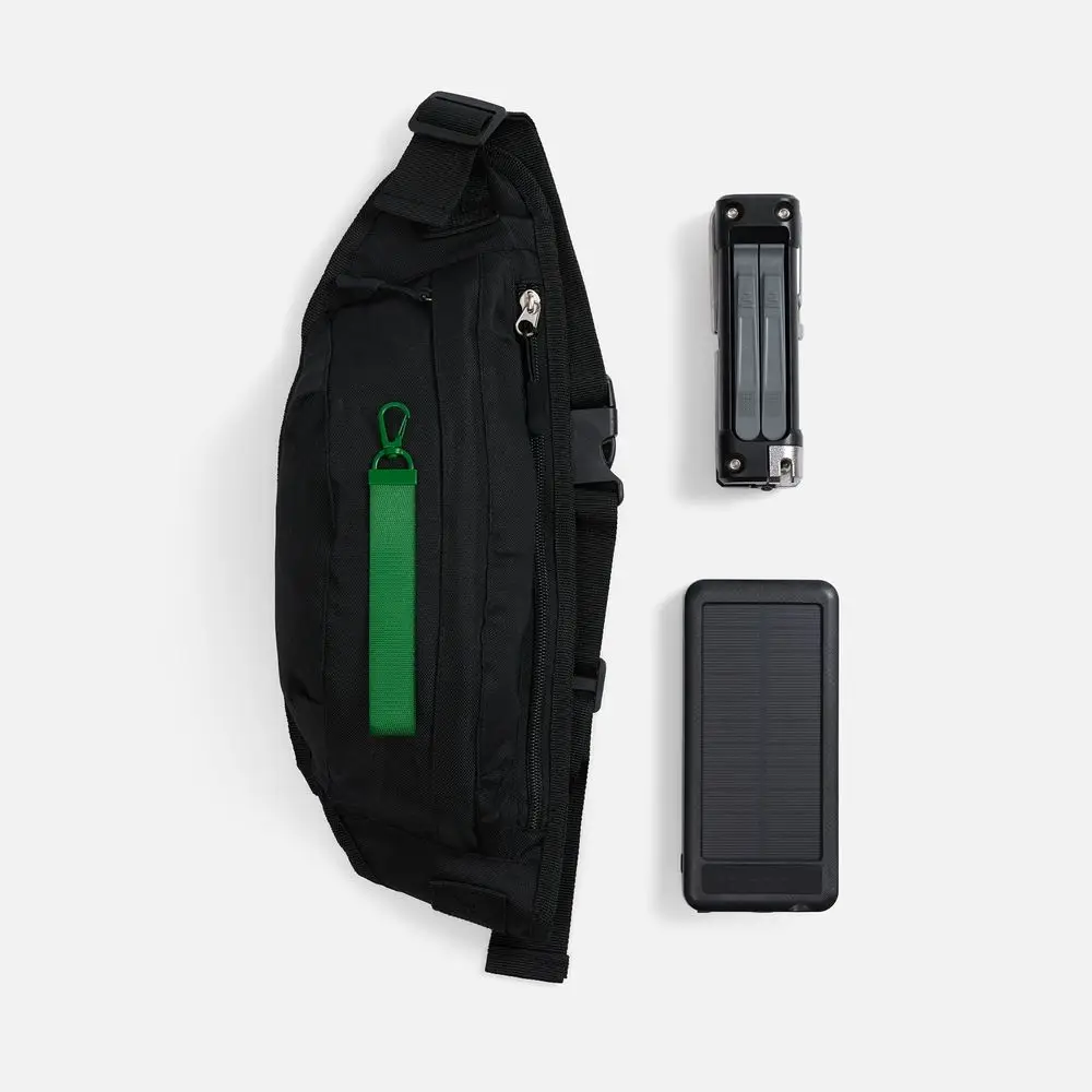 В комплекте — ударопрочный аккумулятор с фонариком, универсальный мультитул для быстрого ремонта велосипеда или самоката, а также практичная сумка.