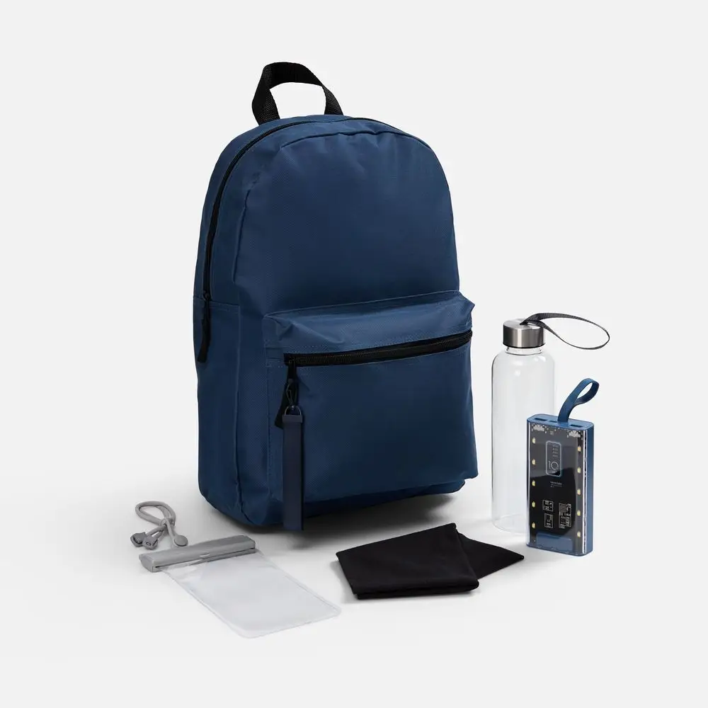 аккумулятор - пластик, акриловое стекло; рюкзак - полиэстер, 600D; водонепроницаемый чехол - АБС-пластик, ПВХ; бутылка - пластик, пищевой; крышка - металл, пластик; бандана - полиэстер 100%, плотность 140 г/м²; джерси; ремувка - металл, полиэстер 100%