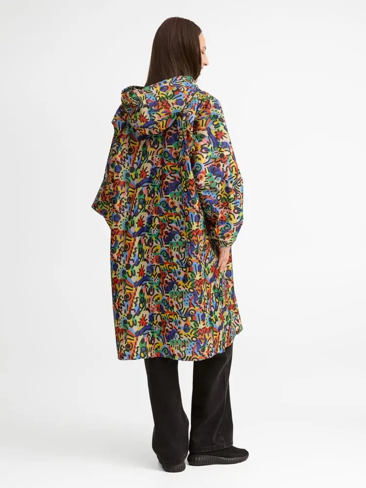 Приложите к заказу оригинал-макет закольцованного бесшовного (endless) узора или паттерна в виде квадрата или прямоугольника с разрешением 300 dpi в масштабе 1 к 1. Полные технические требования к оригинал-макетам смотрите в пункте «Сублимация».Дождевик-анорак с капюшоном из ткани таффета.