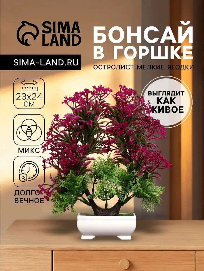 Вечная зелень и яркие краски в вашем интерьере! Искусственный бонсай «Остролист» с ягодами — это изящная композиция, сочетающая в себе философию древнего искусства и современное качество исполнения. Деревце в горшке станет акцентом в любом пространстве, не требуя при этом сложного ухода.